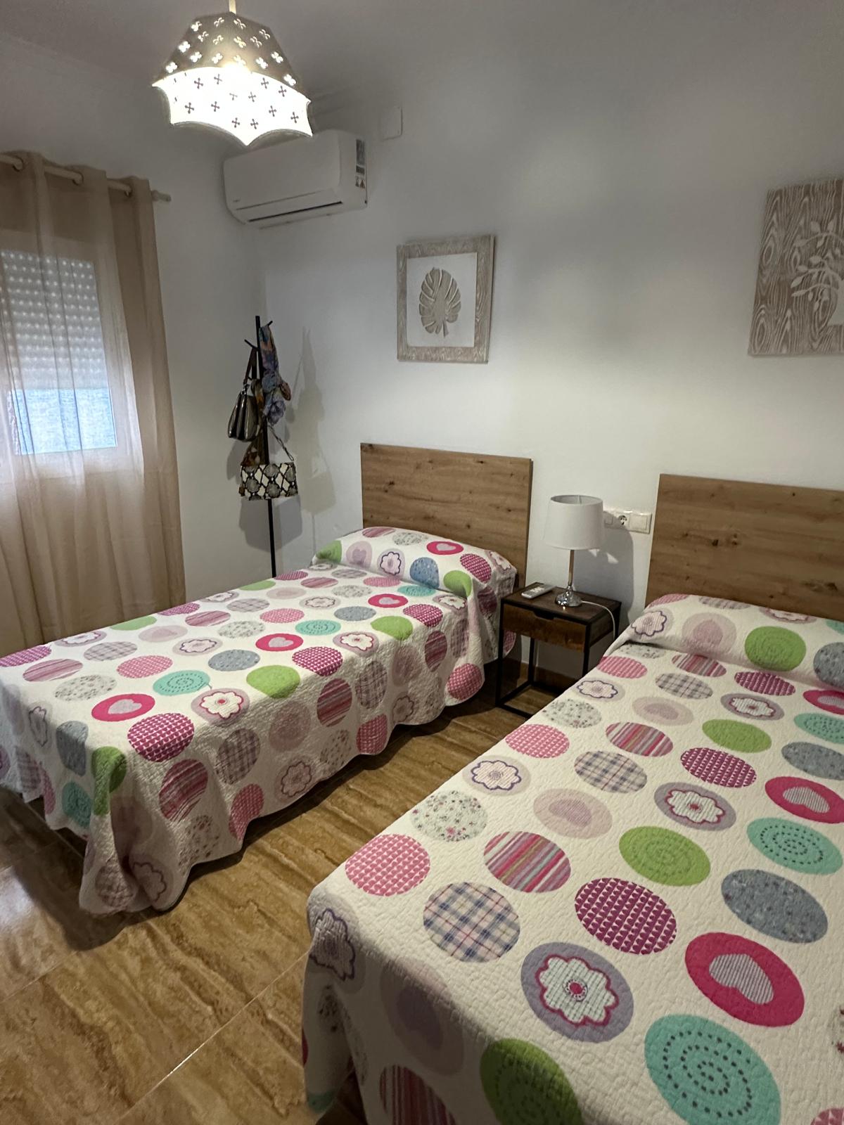 Se trata de un bonito y luminoso apartamento en Conil de la Frontera situado en una buena zona del pueblo, muy tranquilo y cerca de supermercados. Con posibilidad de plaza de garaje. El apartamento tiene capacidad para 4 personas, el interior consta de cocina-salón con aire acondicionado, un baño y dos dormitorios, los dos dormitorios, ventanas al exterior. La cocina está completamente equipada de todo lo necesario para cocinar, dispone placa de vitrocerámica, microondas, etc. Decorado con muebles de calidad y buen gusto, es ideal para pasar unas estupendas vacaciones de verano disfrutando de las excelentes playas de Conil.